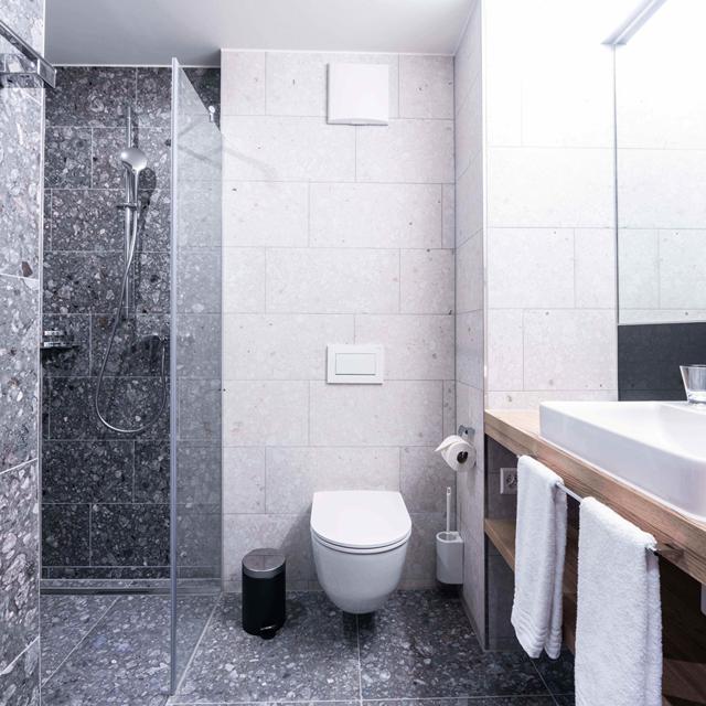 Het hotel is volledig vernieuwd. De 86 kamers zijn warm en strak ingericht, met zachte kleuren, dikke matrassen en doordachte details die zorgen voor rust en comfort. Je merkt meteen: hier draait alles om ontspannen en opladen. In de ochtend stroomt het licht naar binnen, terwijl jij geniet van een krachtige douche of een kop koffie op je kamer.